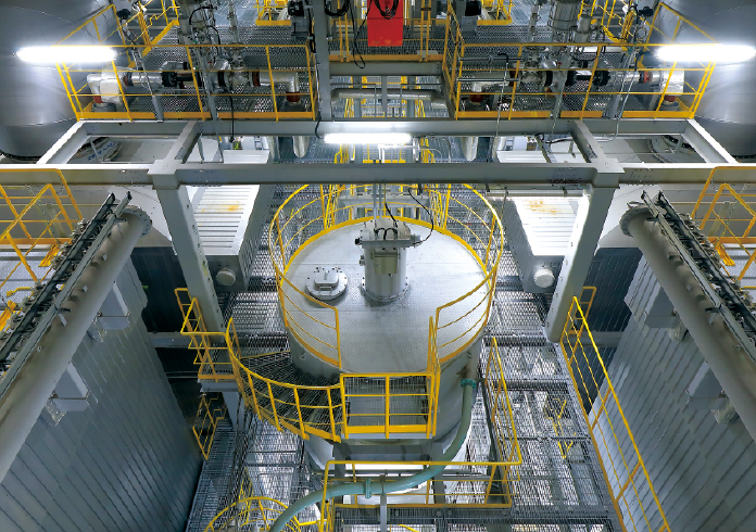 ごみ収集車がプラットホームから投入したごみを貯めておく所です。ごみピットは、容量が約8‚200m³ あり、深さは16.8メートル、幅は25.4メートル、奥行きは19.3メートルで、25メートルのプール約23 個分の大きさになります。ここには、リンピアいなばが1 日に処理できるごみ量240トンの10 日分、約2,400トンのごみを貯めることができます。