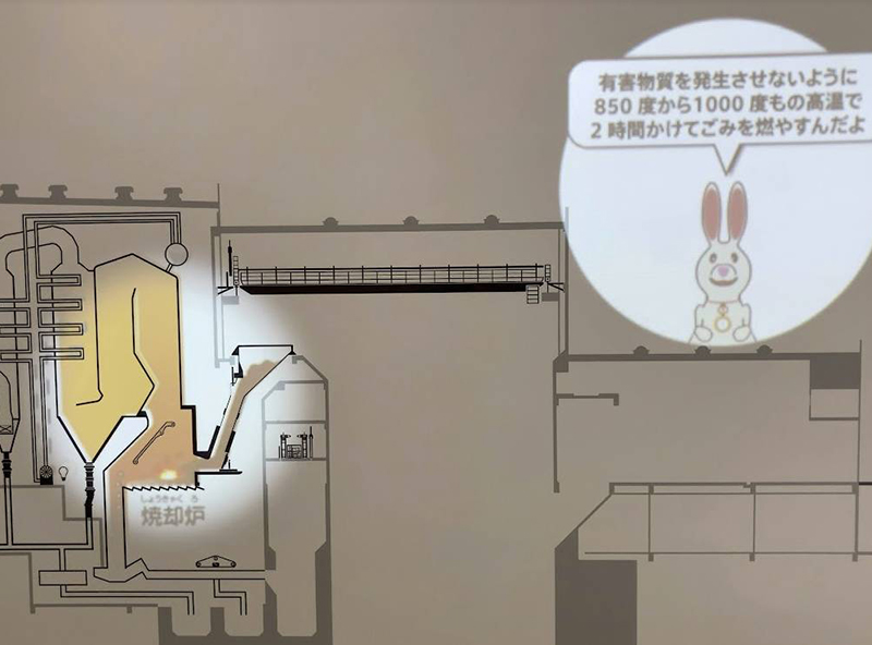 プロジェクションマッピングでごみ処理の流れを分かりやすく説明します。