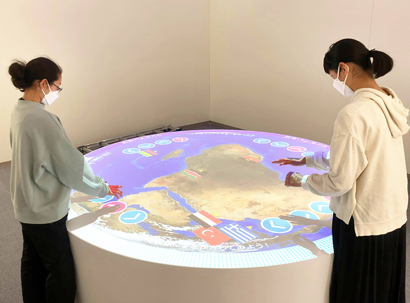 投影されている世界地図に手をかざし(モーションセンサー)、日本の各地域や世界のごみ事情など見ることができます。