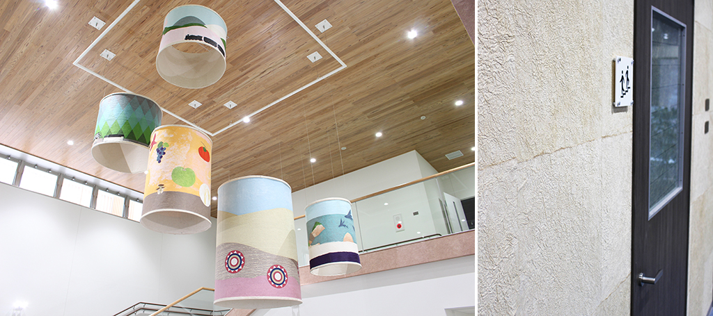 リンピアいなばは、地域の方に誇りと愛着を持っていただくため鳥取県東部の地元産材や伝統工芸品を積極的に活用しています。